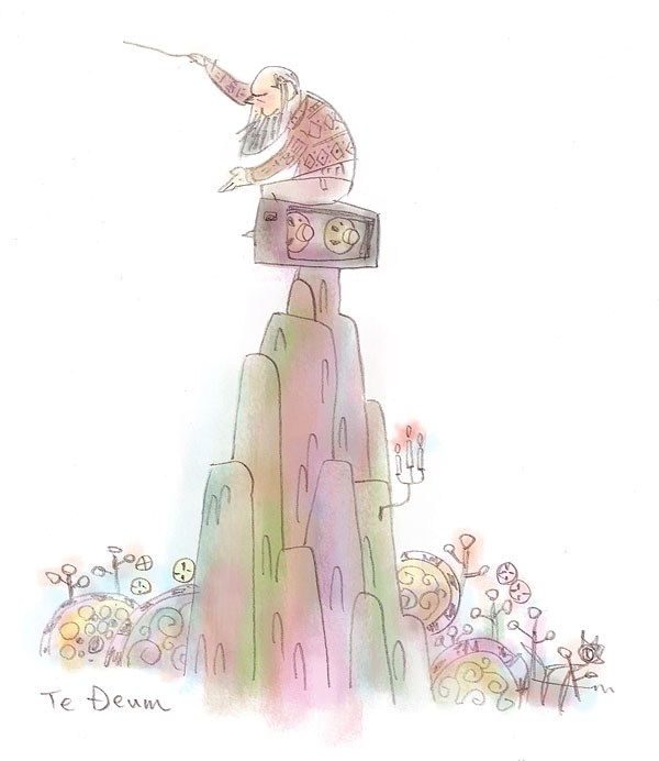 | 2010.7.8 テ・デウム ------------------------- アルヴォ・ペルトという作曲家の 「テ・デウム」というアルバムを聴きながら落書きしました。 ミニマルや現代音楽からスタートした作曲家ですが 宗教音楽と中世の作曲技法にのめりこんで修道院に入り… という異能の人です 静かではかない旋律の底から音楽がわき上がってくるような作品が多くて 「今は音楽は聴きたくない!」なんて時にぴったり! |